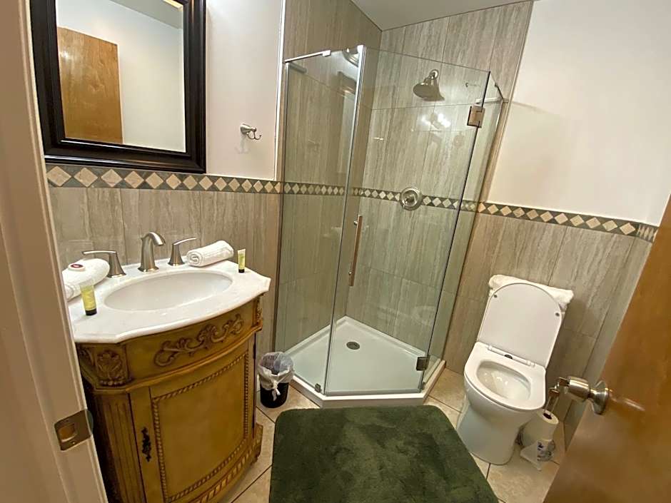 The family room features air conditioning and a private entrance, as well as a private bathroom boasting a walk-in shower. The family room features soundproof walls, parquet floors, a tiled floor as well as heating. The unit has 1 bed.